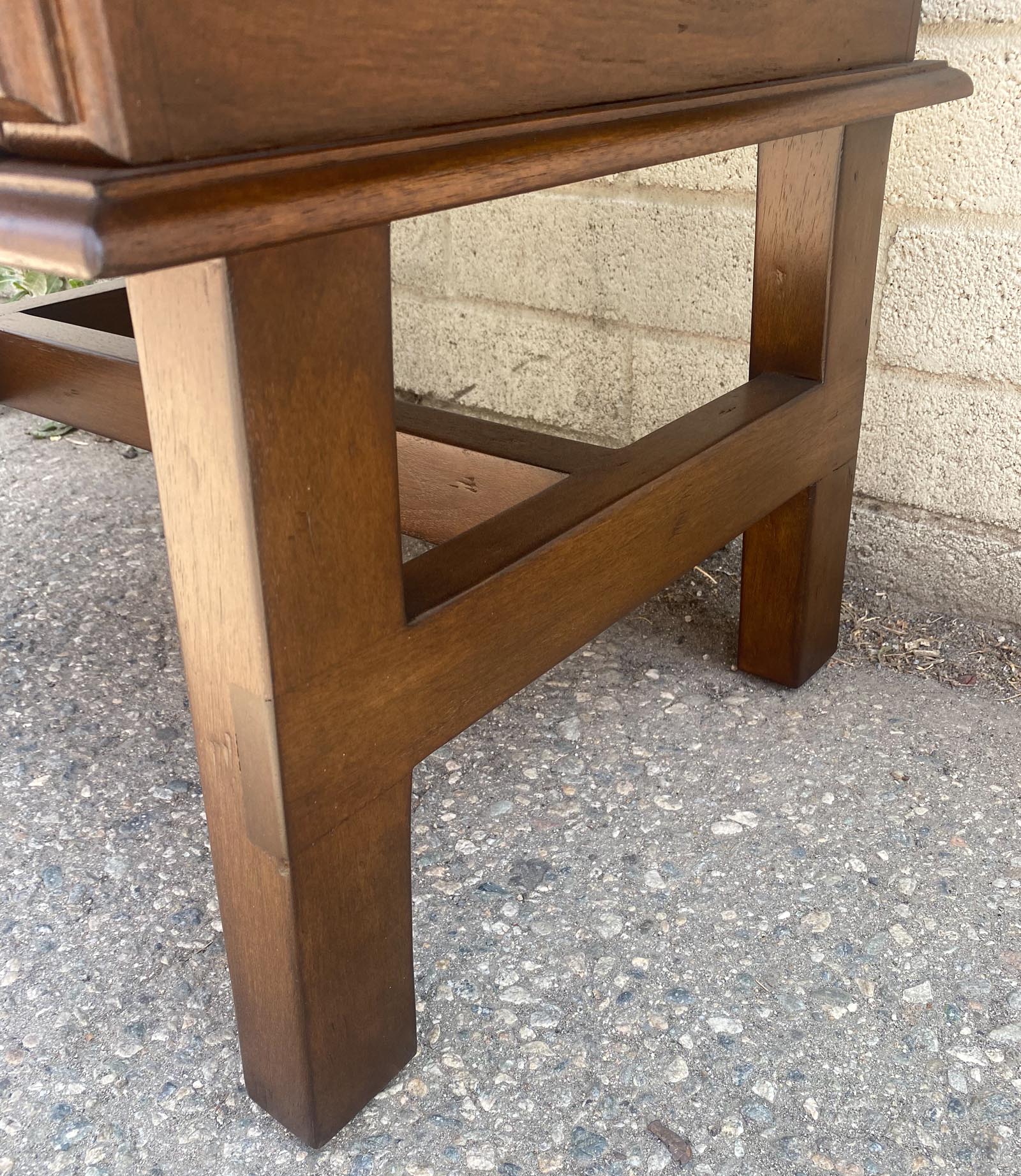 Made to order as per clients' specifications. Shown here in 36x24x20”H in walnut with a medium walnut finish and light distress.