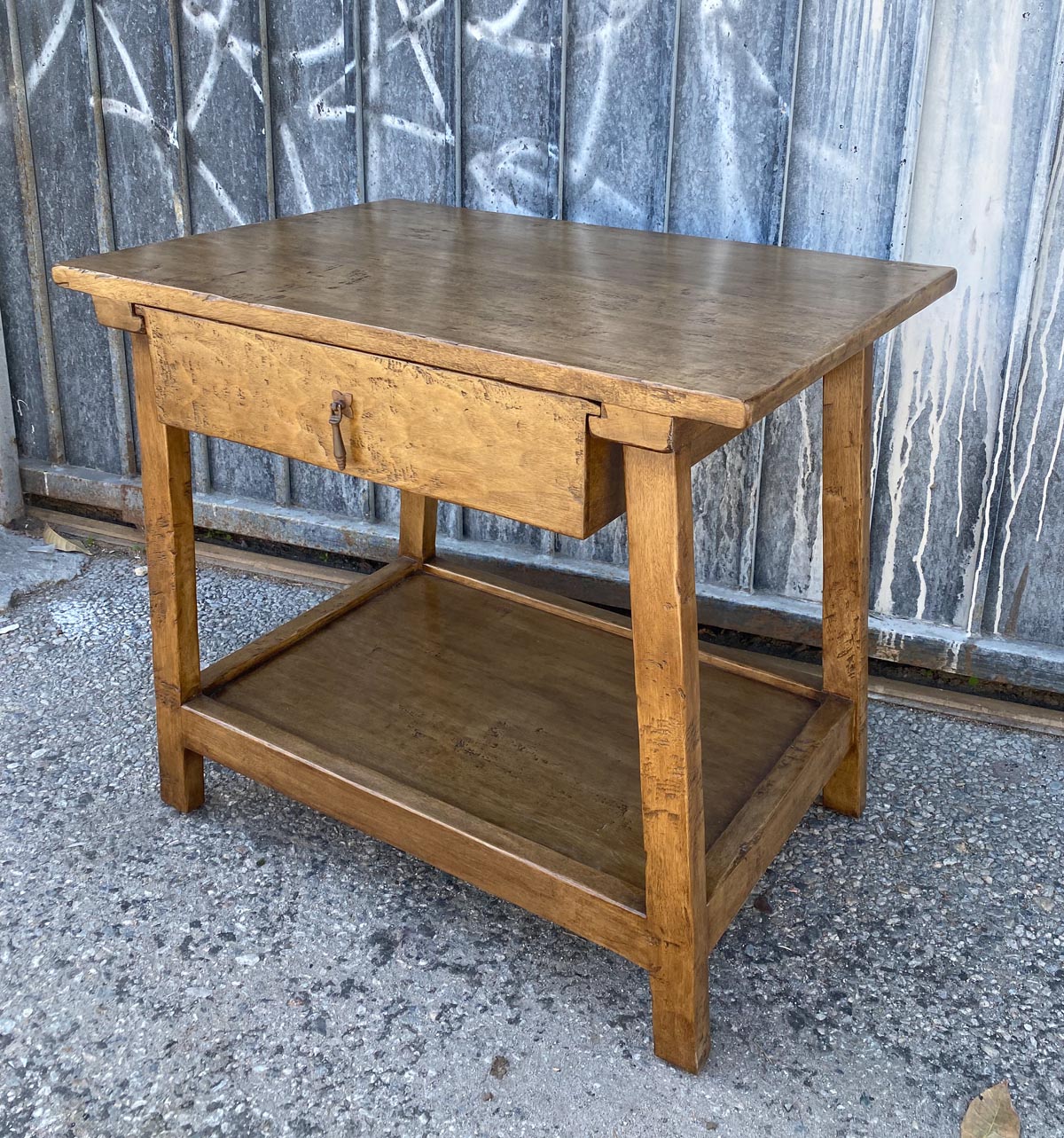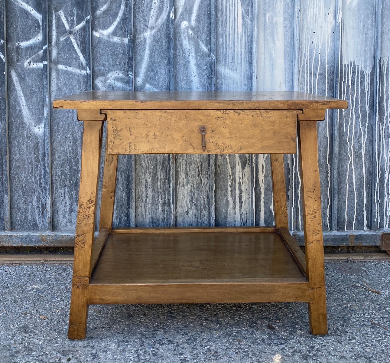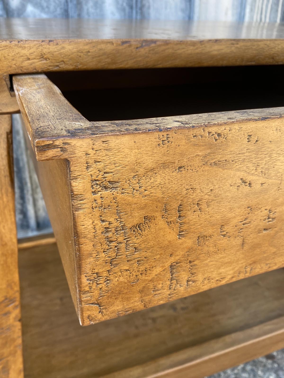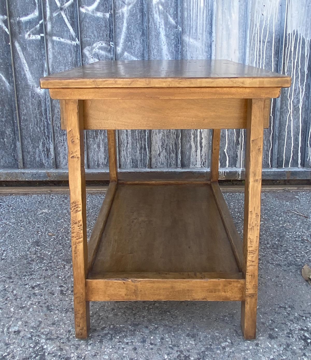 Custom side table or nightstand with drawer. Can be made ion any size and finish. Shown here with a heavy distress and our Walnut #1. Our pieces are bench made from solid wood and hand finished in Los Angeles. The lead time is 16 weeks.
