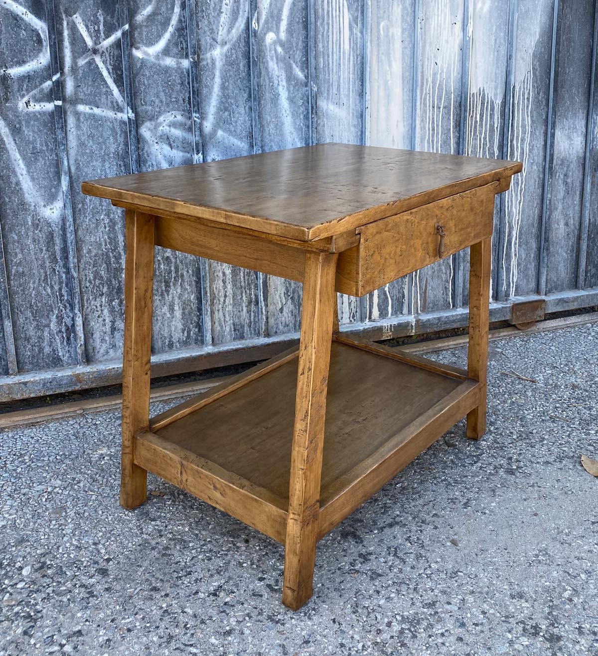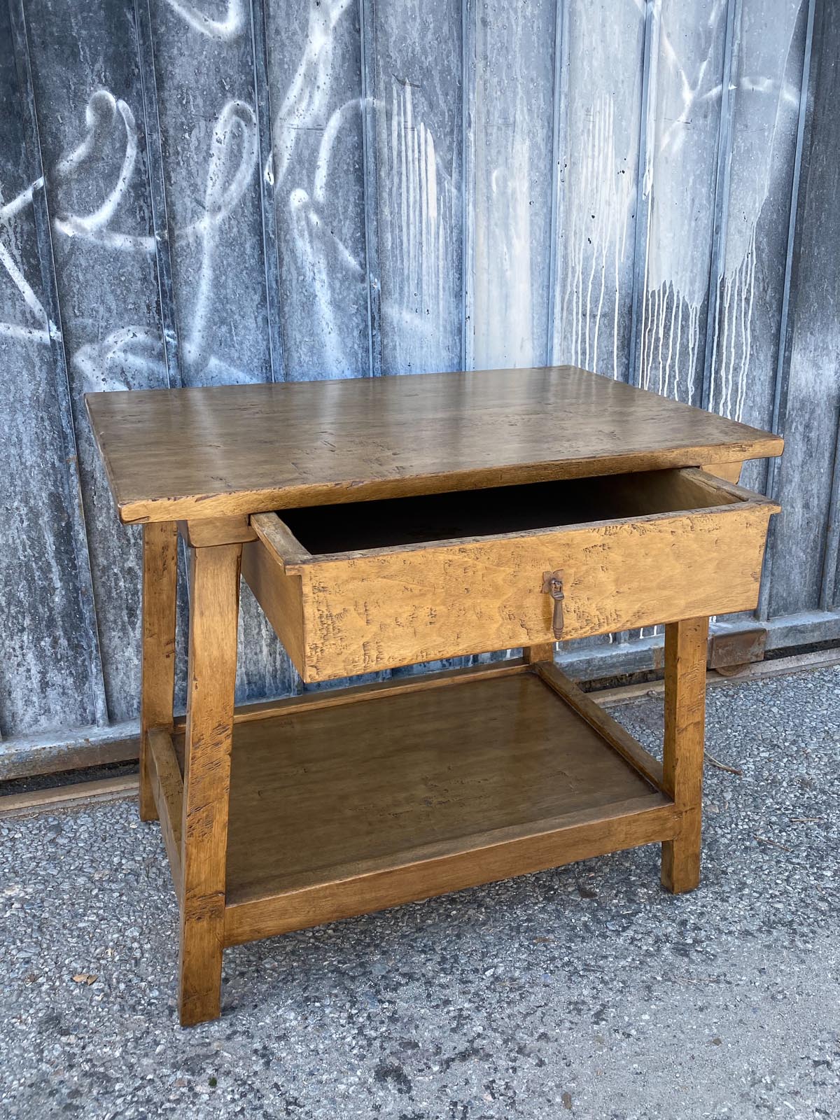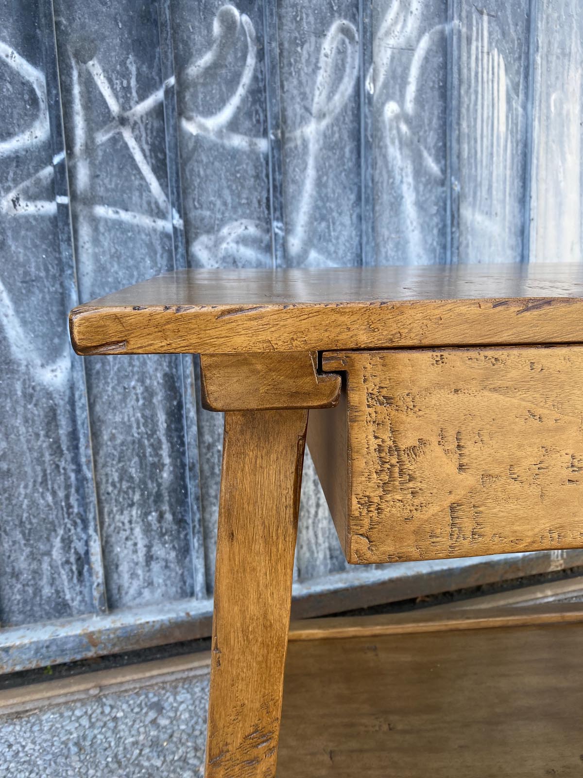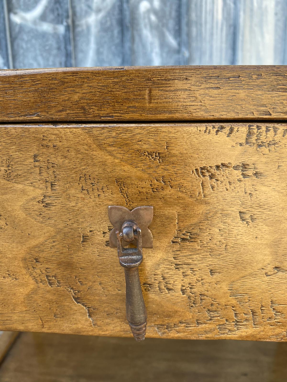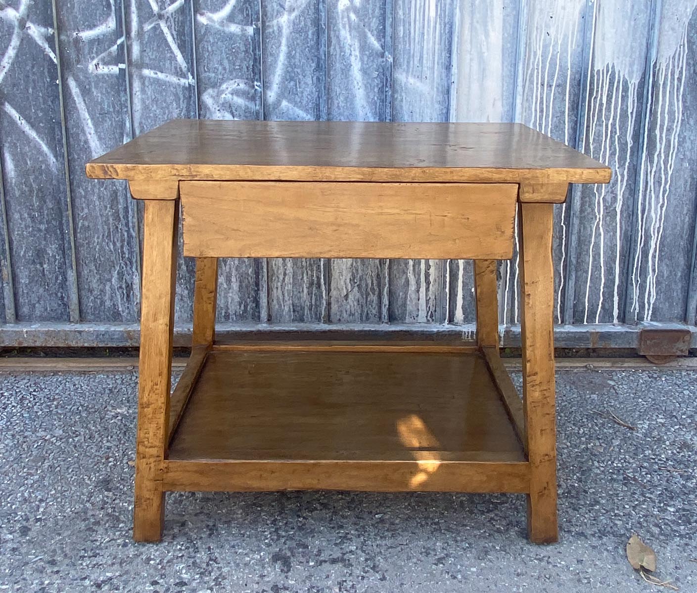 Custom side table or nightstand with drawer. Can be made ion any size and finish. Shown here with a heavy distress and our Walnut #1. Our pieces are bench made from solid wood and hand finished in Los Angeles. The lead time is 16 weeks.
