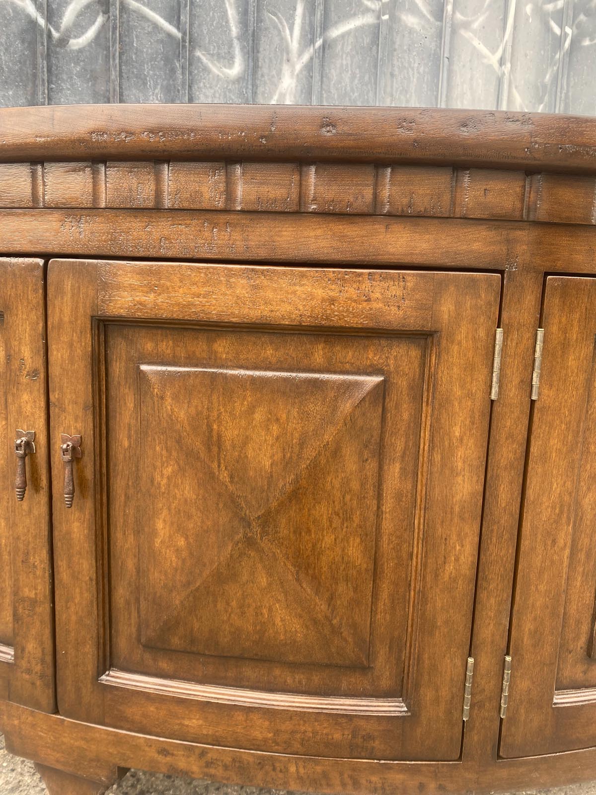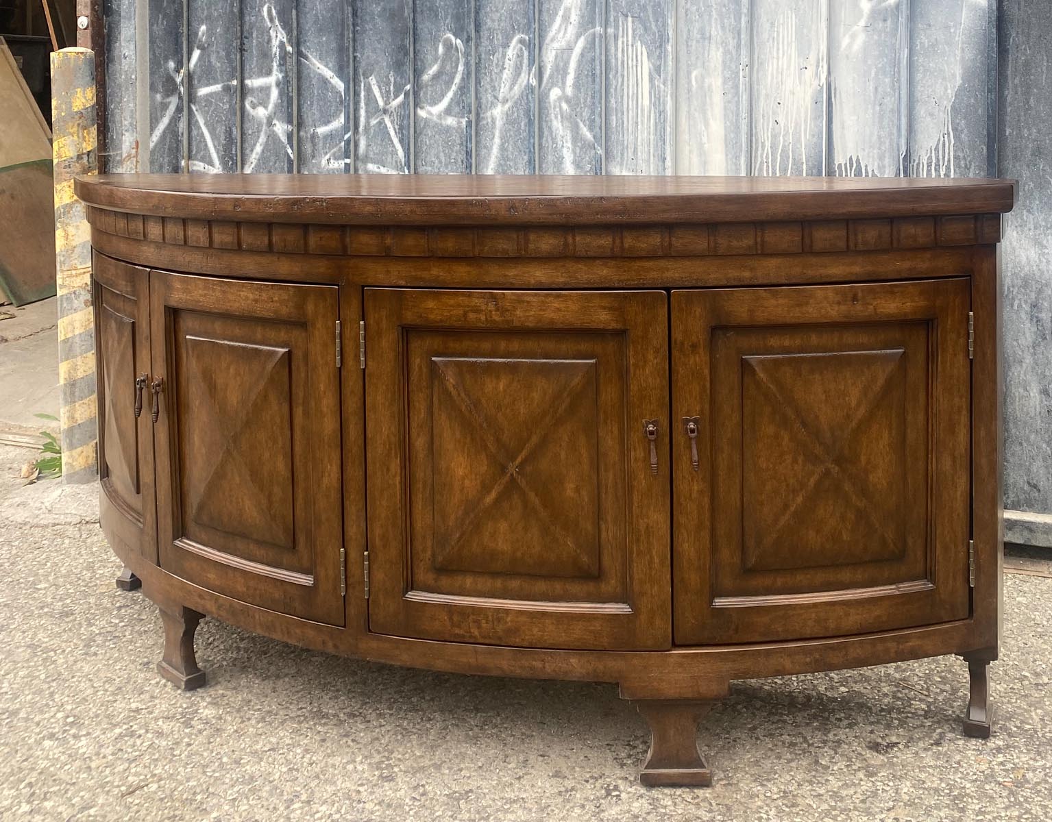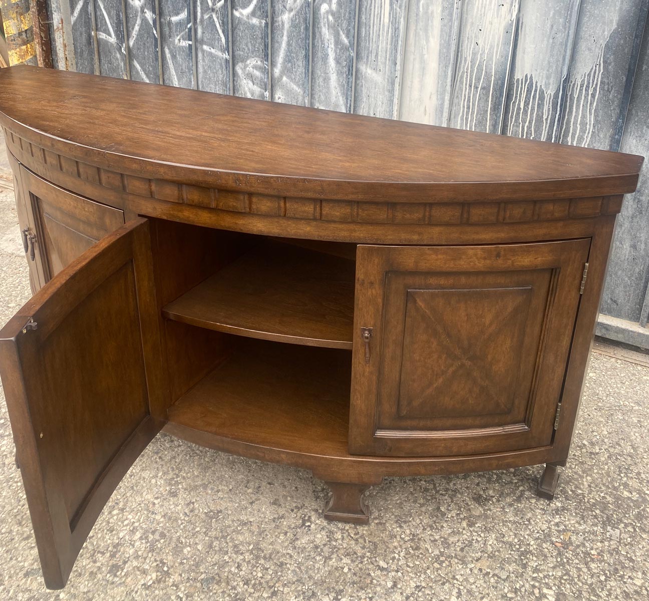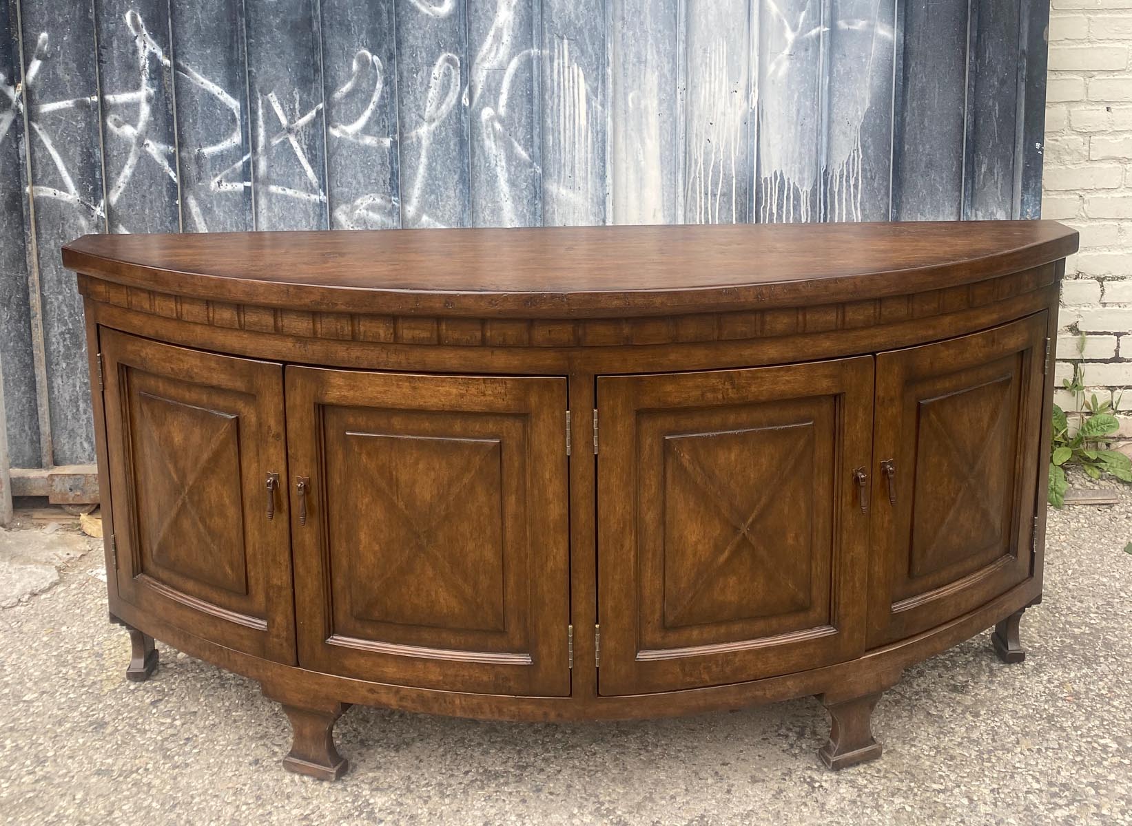 This cabinet can be made in any size and finish. Shown here in walnut with a custom, medium distressed finish. The lead-time is 16 weeks. Bench made from solid wood, and hand finished in Los Angeles.