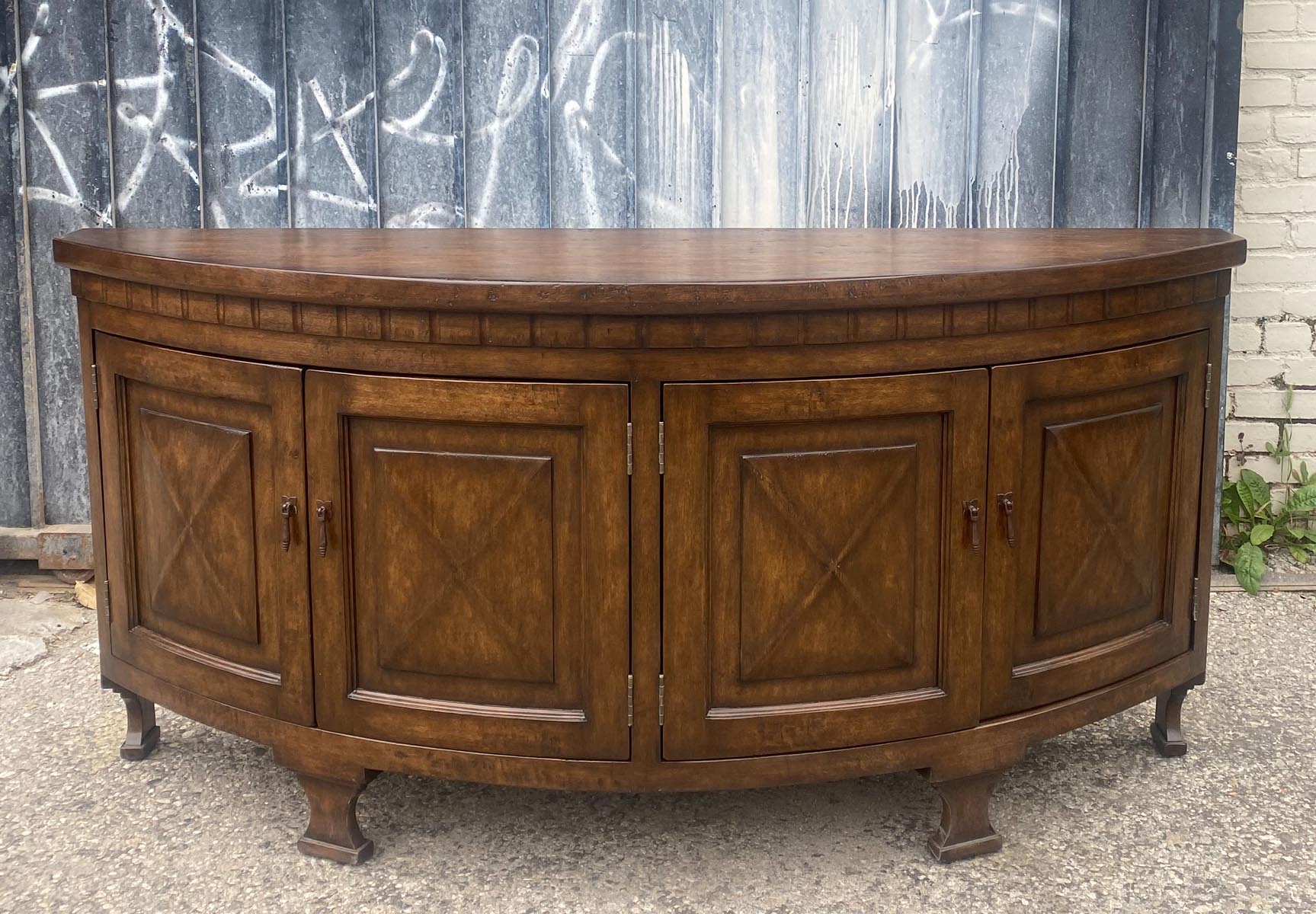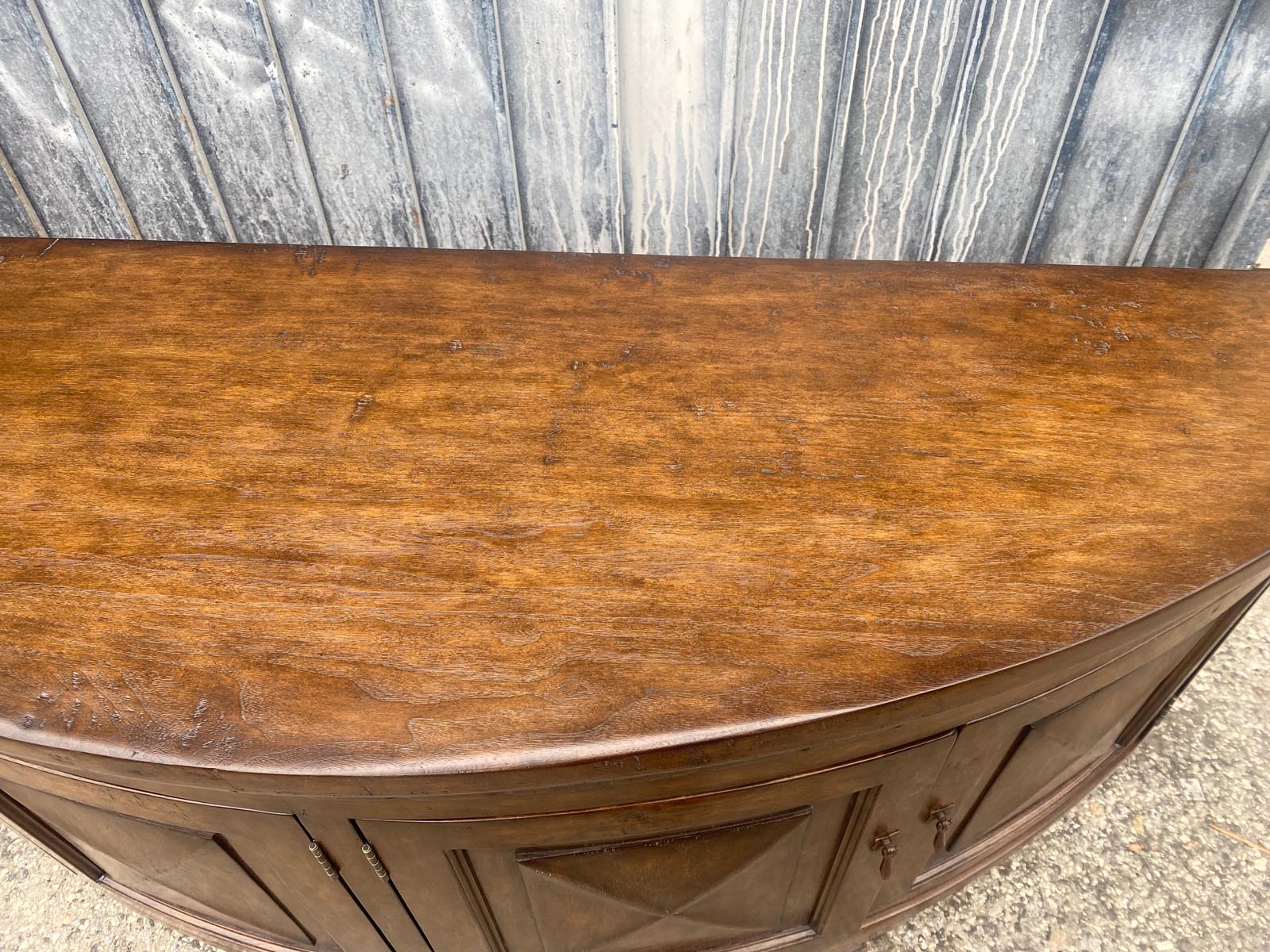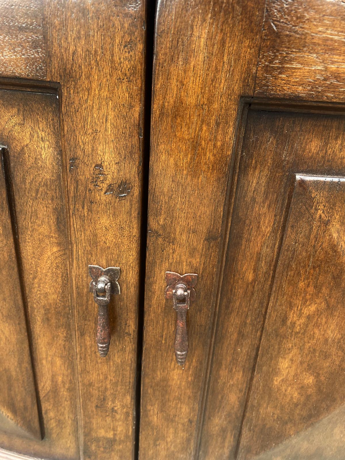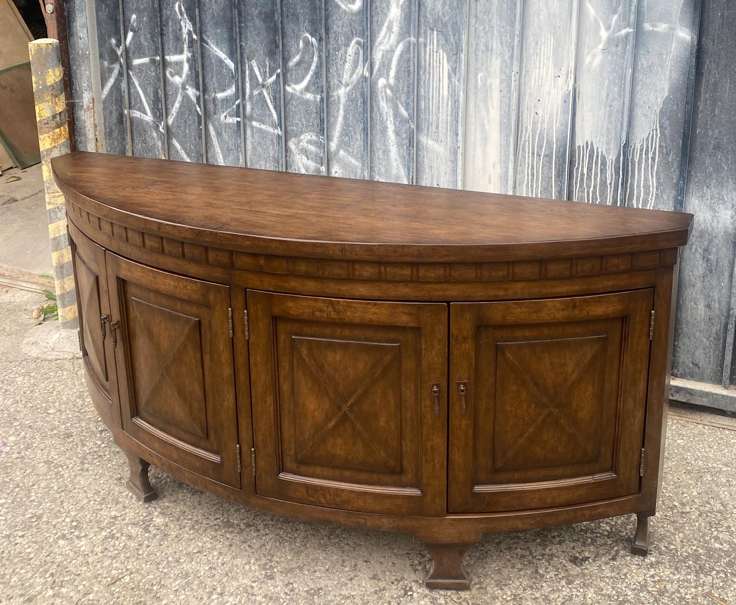 This cabinet can be made in any size and finish. Shown here in walnut with a custom, medium distressed finish. The lead-time is 16 weeks. Bench made from solid wood, and hand finished in Los Angeles.