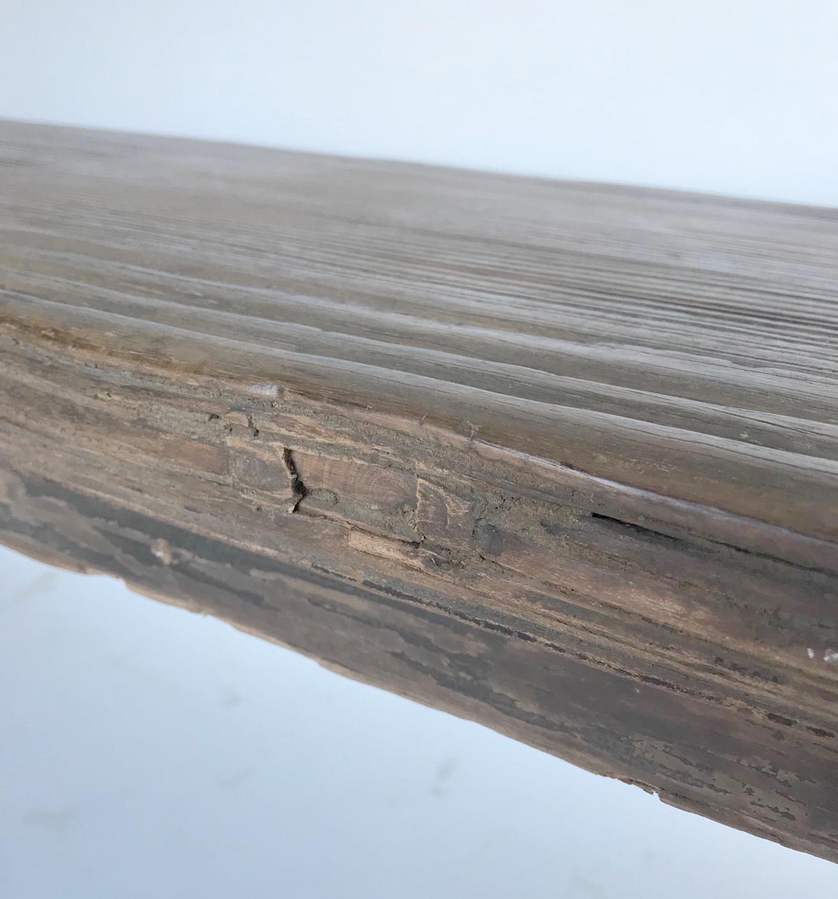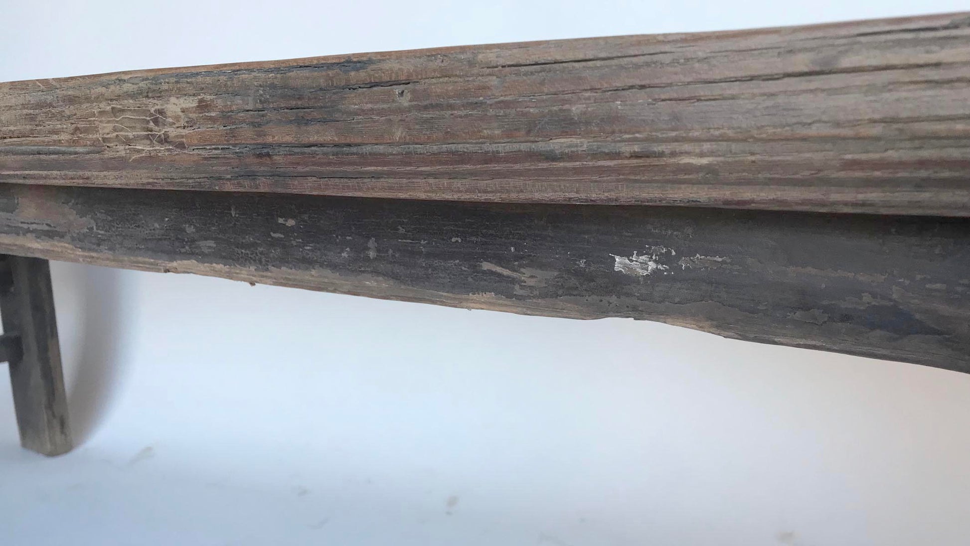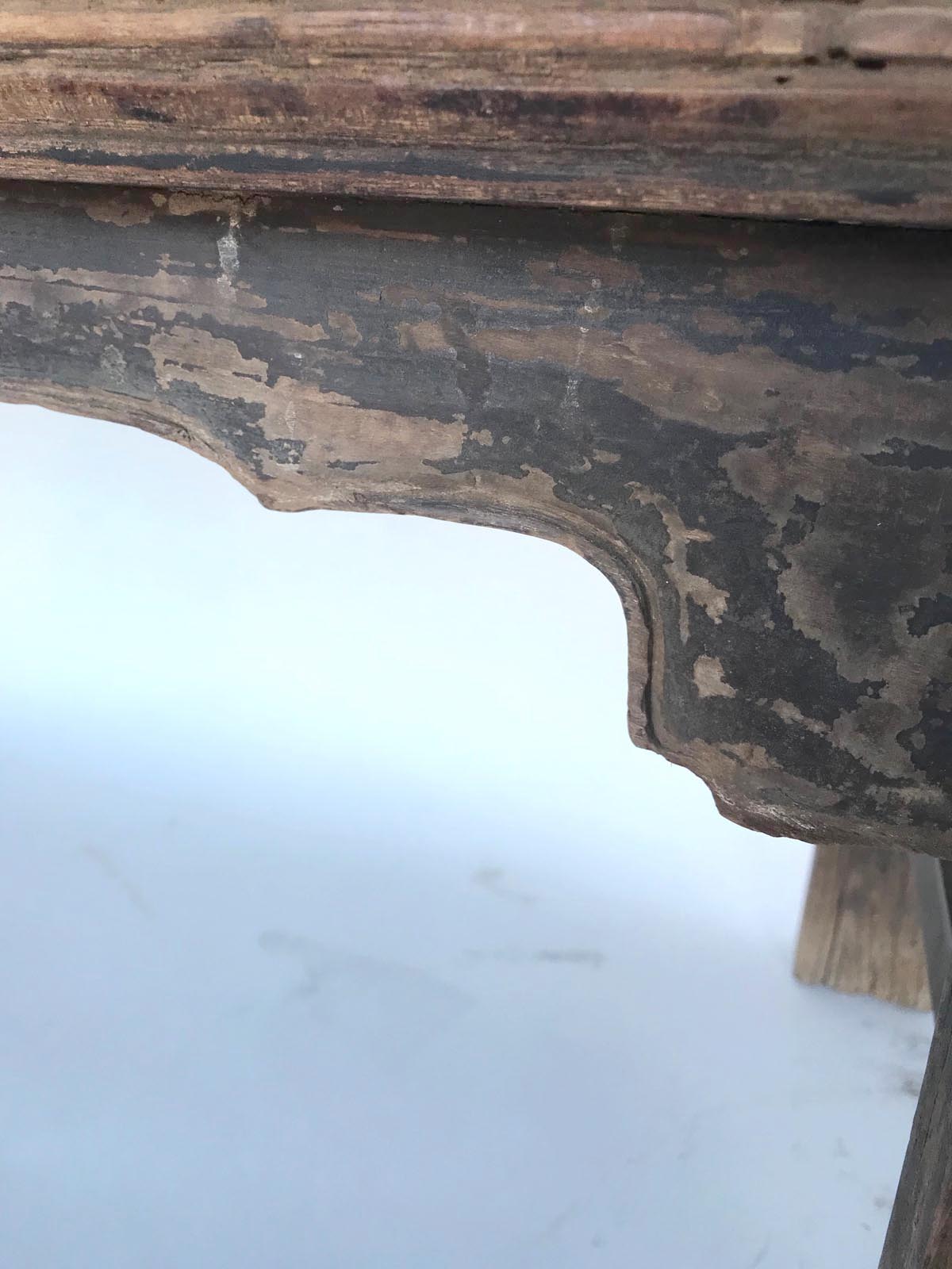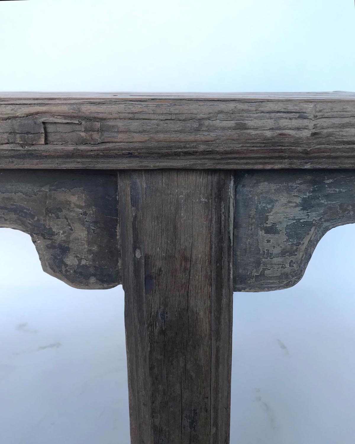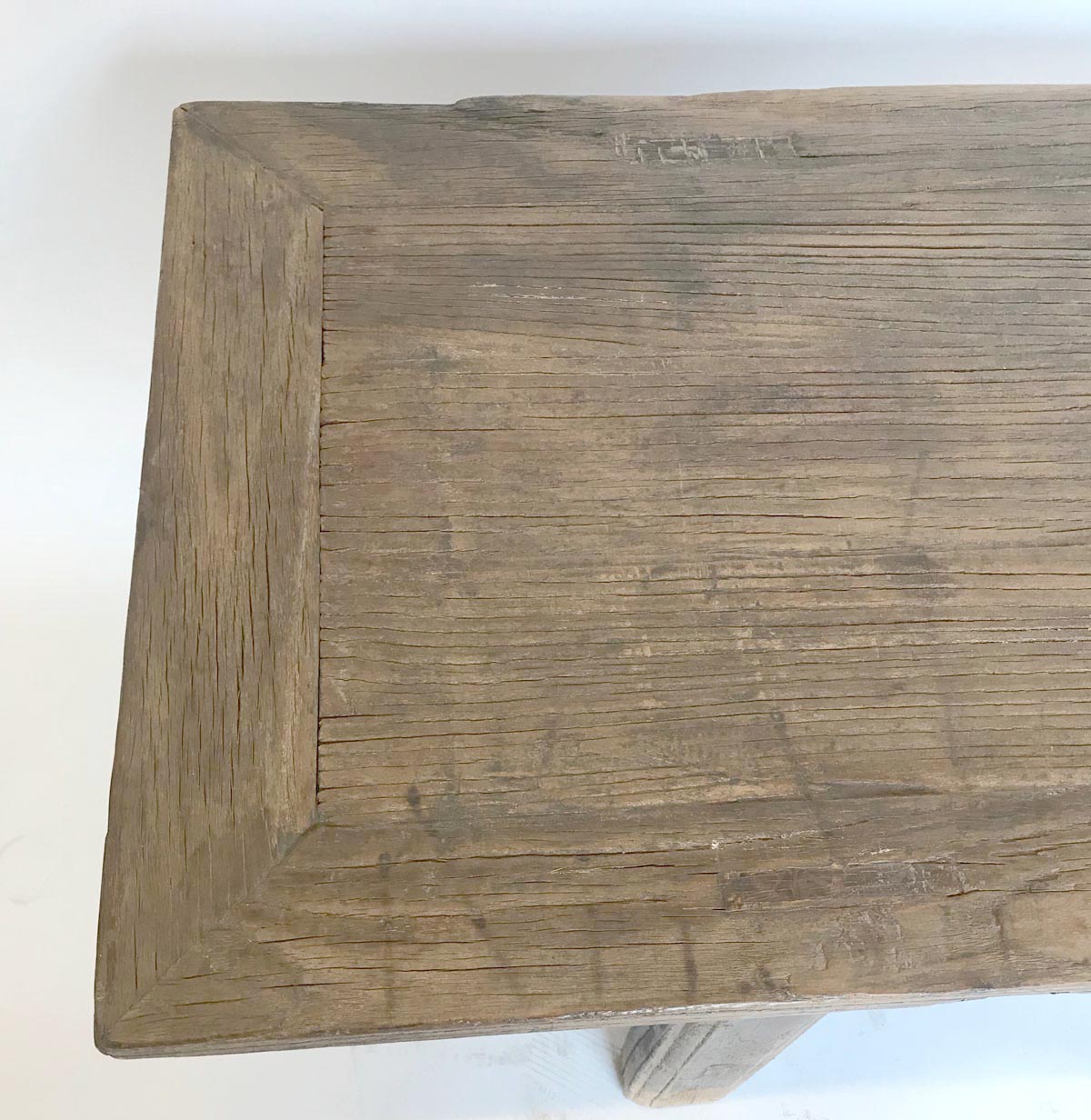 19th c. Chinese elm bench with framed seat. Pretty detailed carved apron. Rustic and elegant.