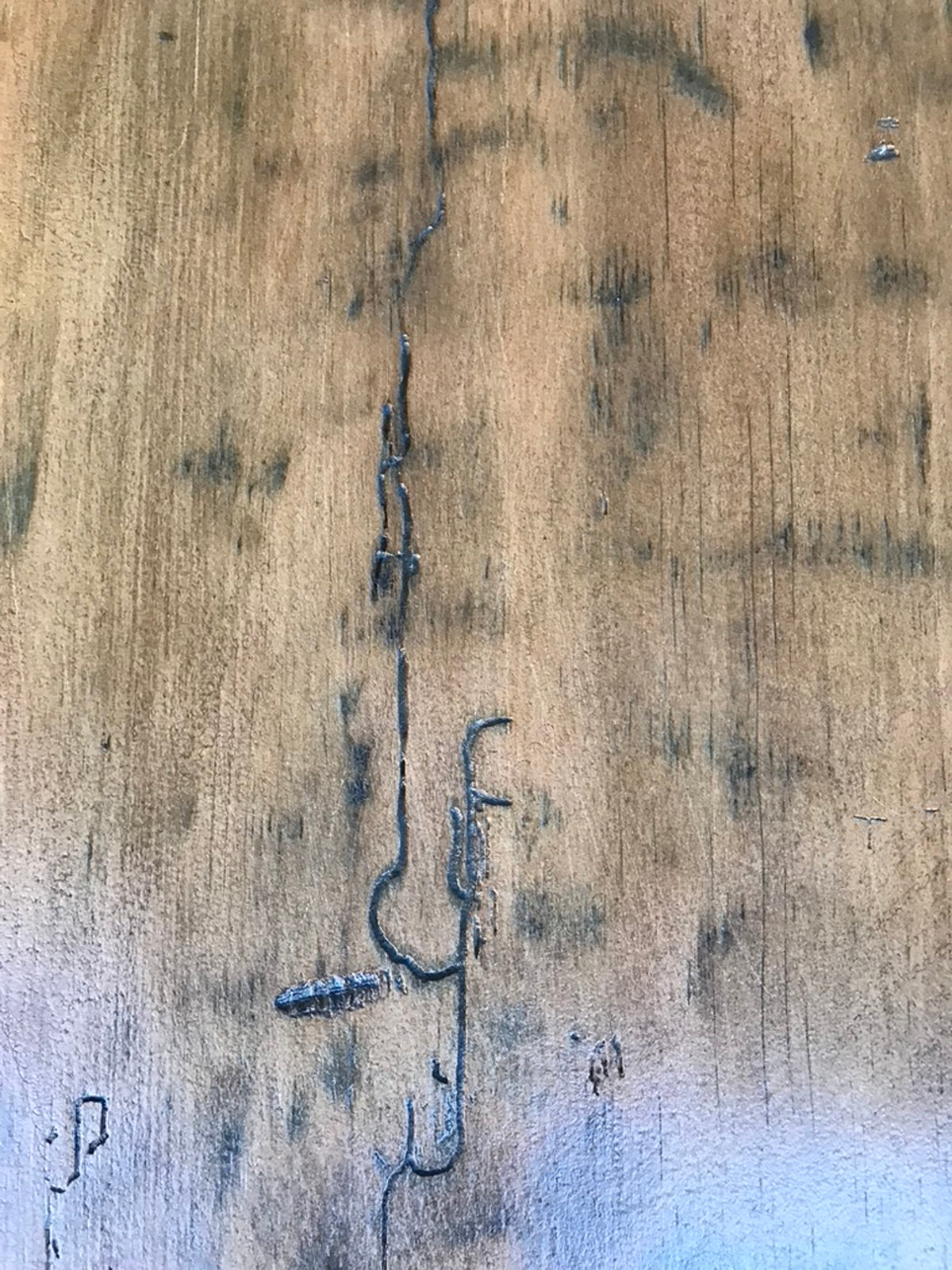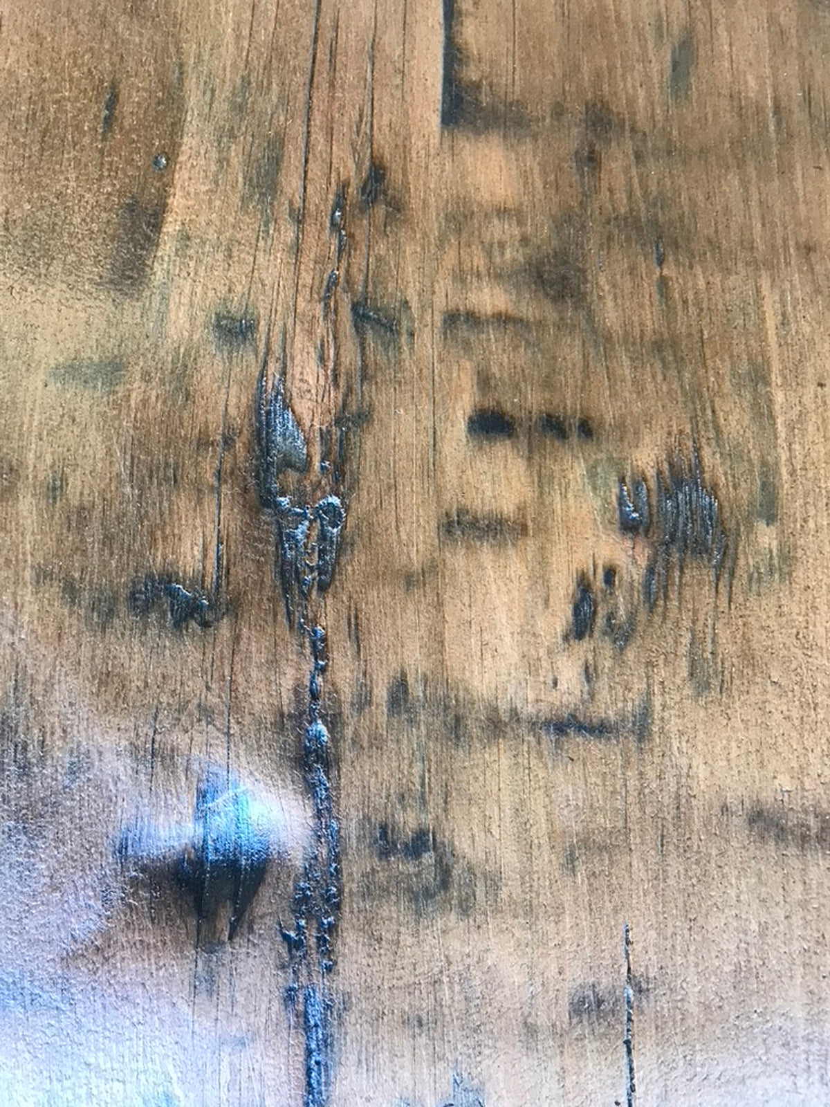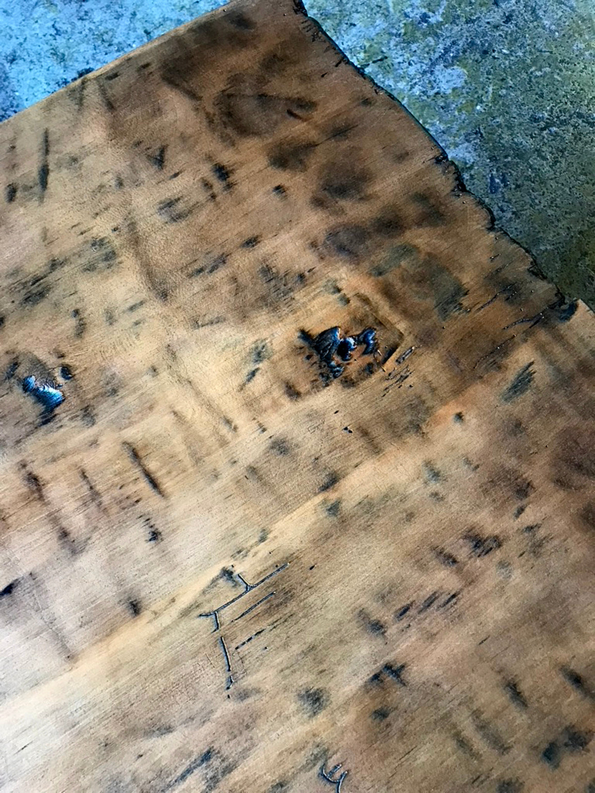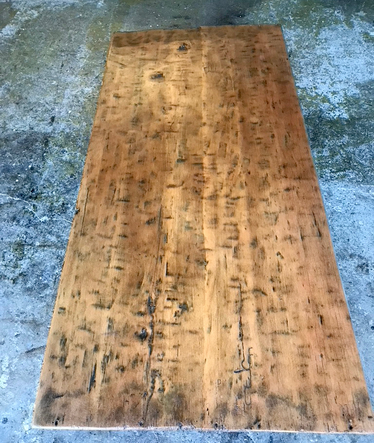 Rustic coffee table consisting of an antique, hand hewn, one wide board from Guatemala, atop contemporary legs, finished to match the top. The top has great patina and interest. It shows age appropriate wear, please see close up photos. Construction is new and sturdy