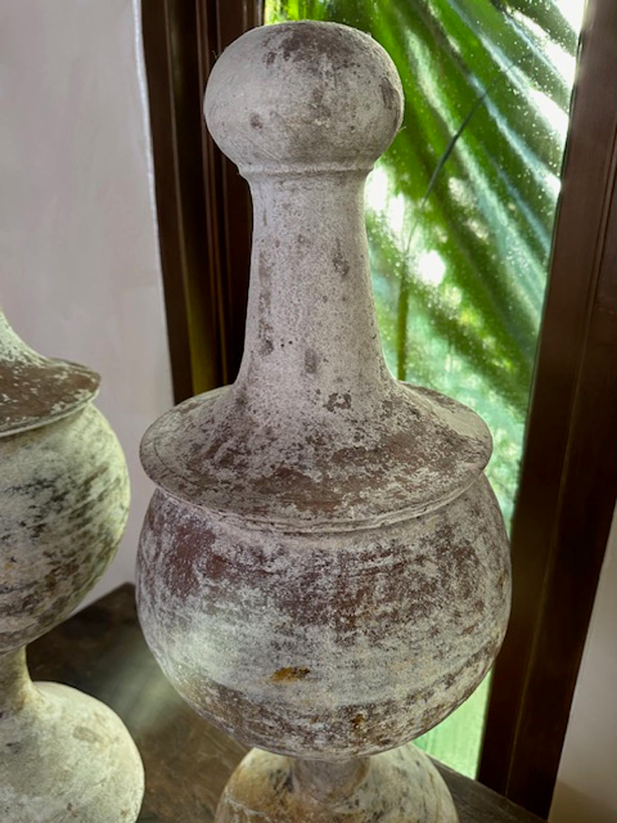 These sat on pre 1825, Spanish Colonial houses. Top lifts off. From the high Highlands of Guatemala. Old natural patina.