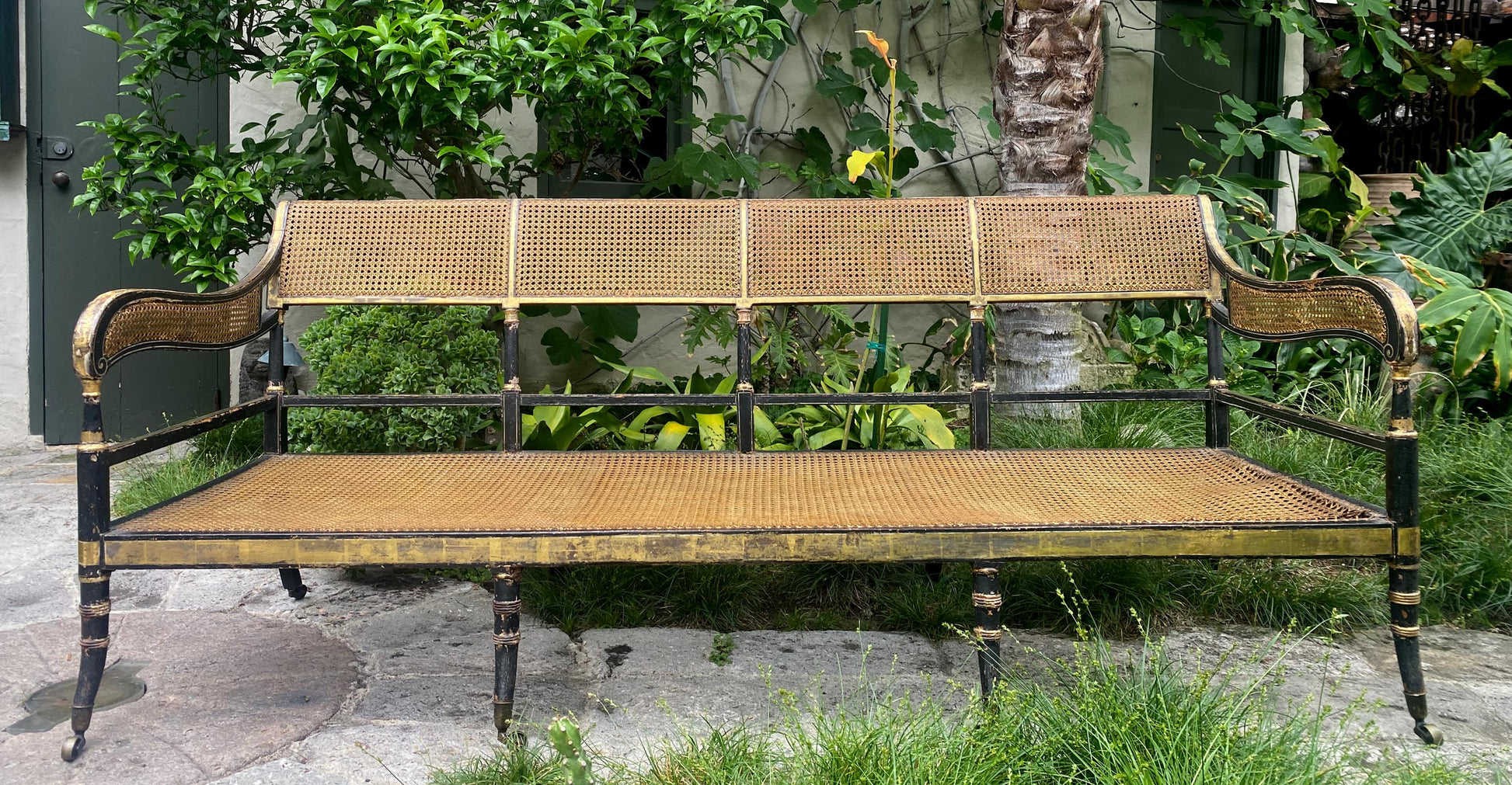 Gilded Cane English Regency Settee C 1810 with Original Horsehair Cushion