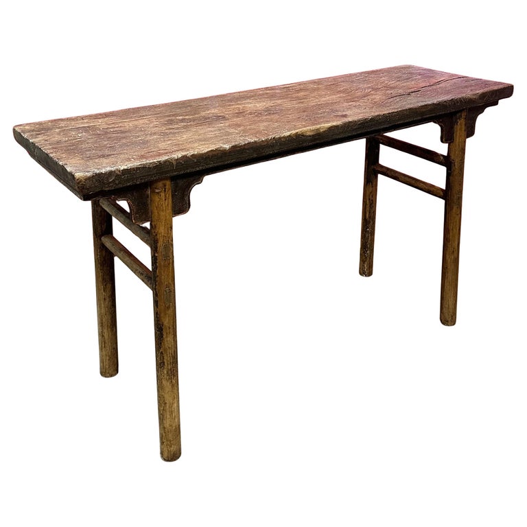 This exceptional Northern Elm (Yumu) altar table/console table exemplifies the refined simplicity of the Ming period aesthetic. Crafted with a thick, single-plank top, the piece showcases a magnificent natural patina and deep grain character that can only be achieved through centuries of use and age.