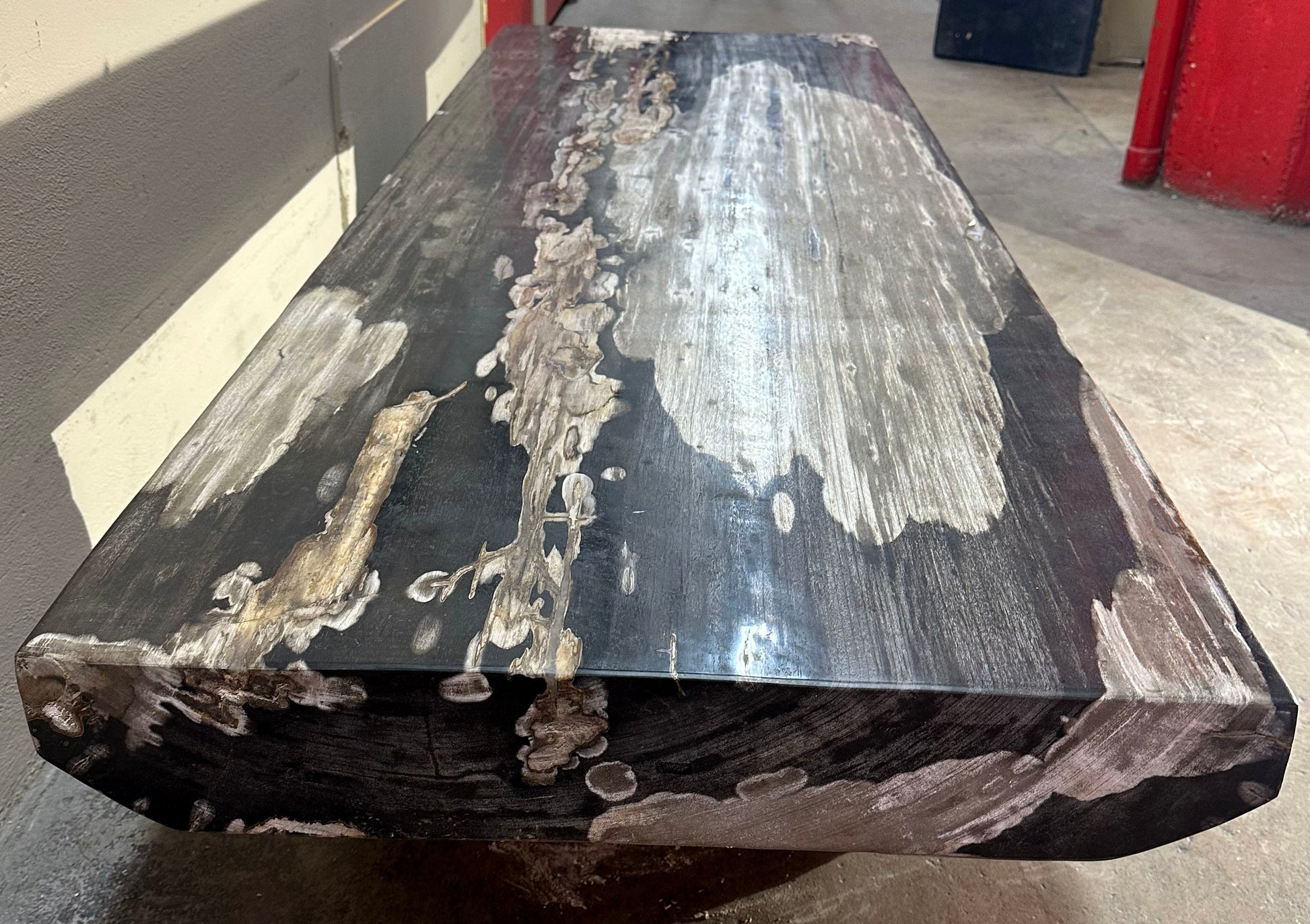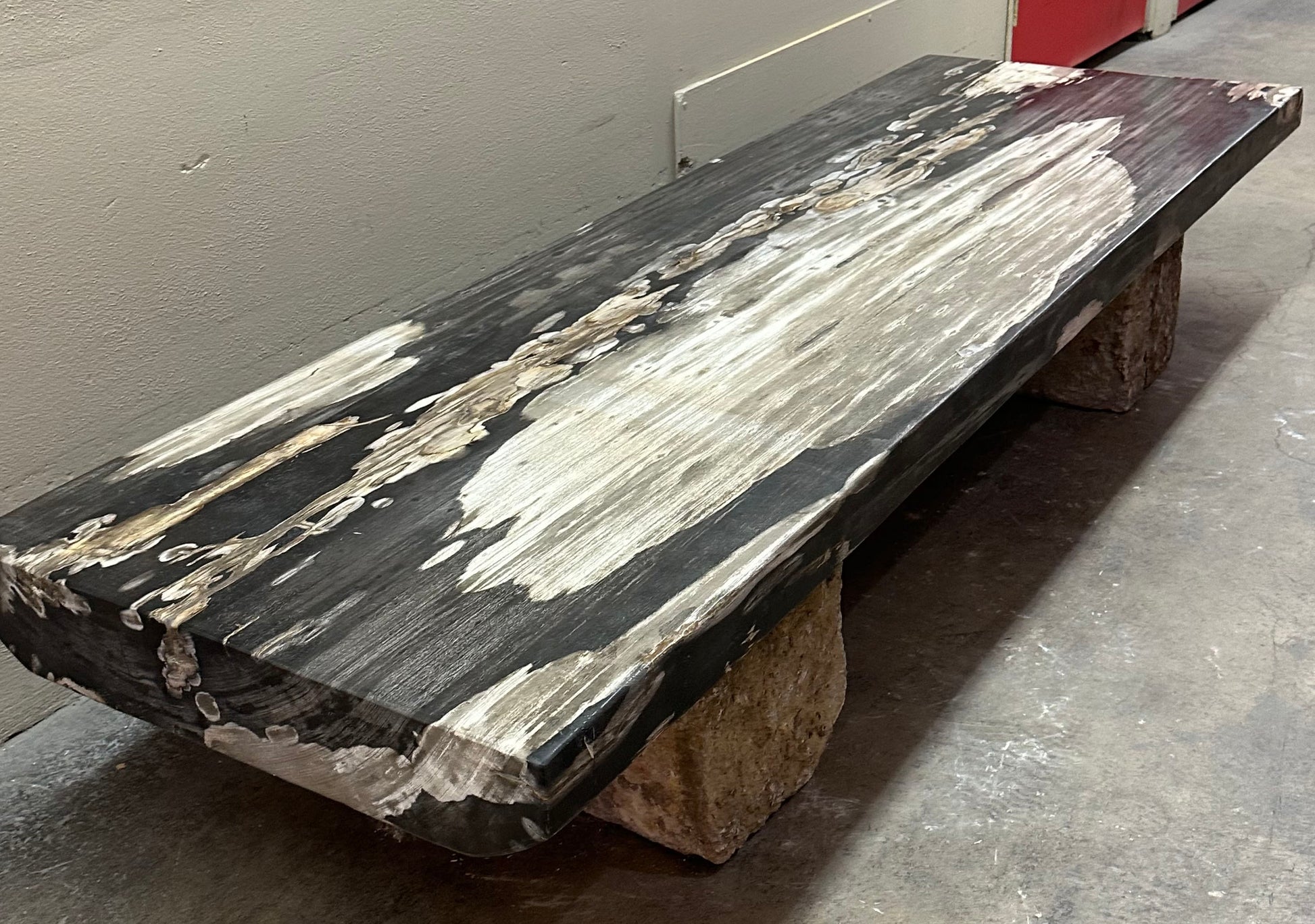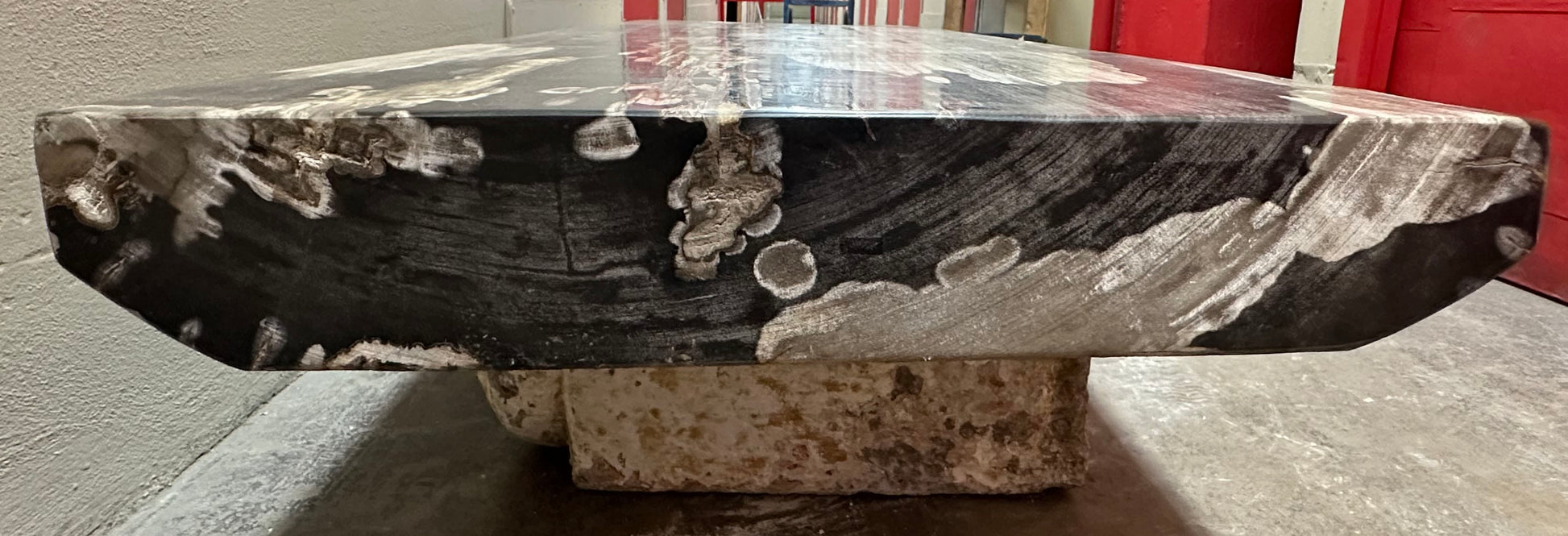 Stunning Petrified Wood Top Coffee Table on Stone Bases