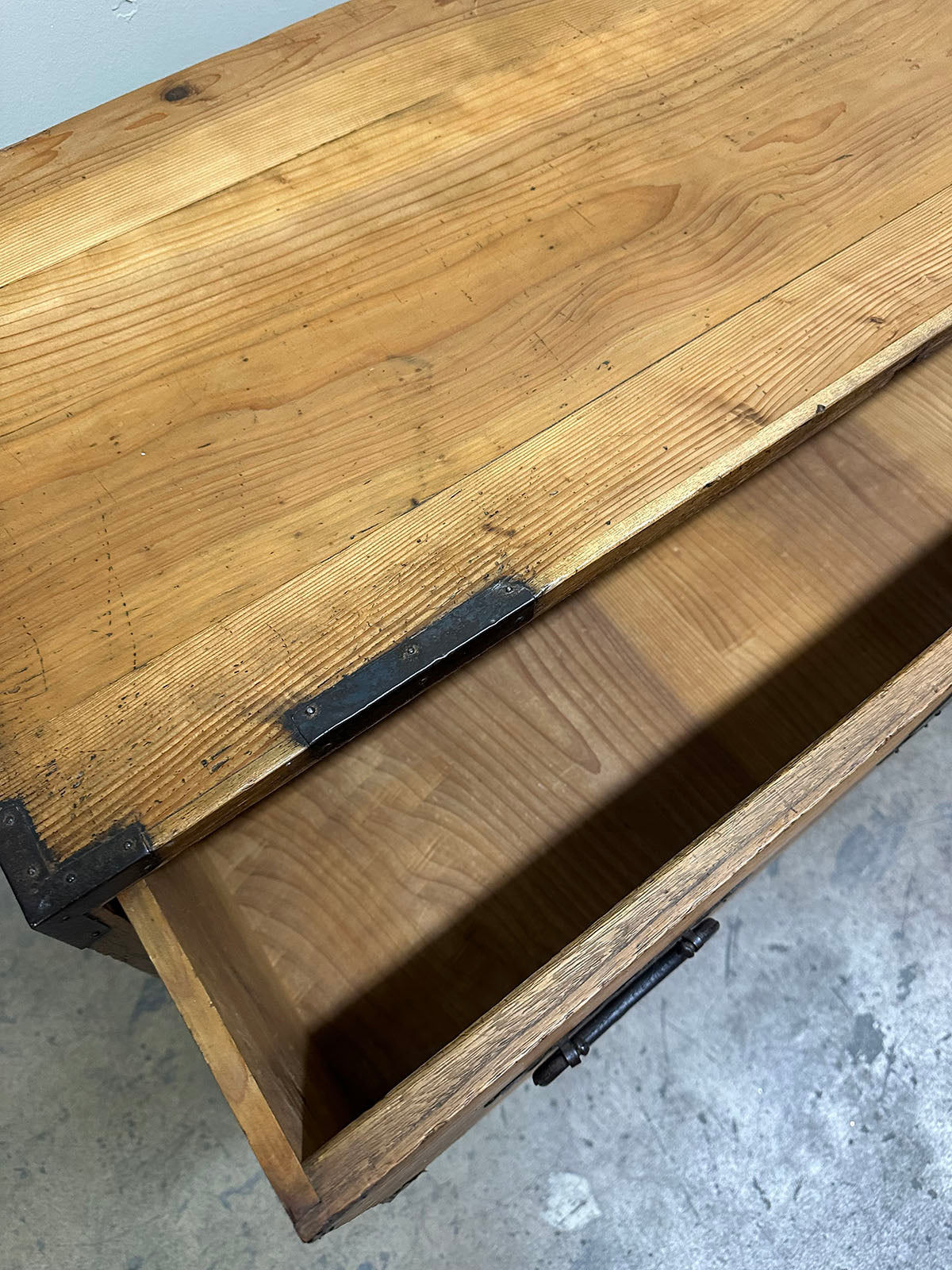 Pair of 19th-century Japanese Isho-dansu (clothing chests) that beautifully bridge the gap between Edo/Meiji era craftsmanship and contemporary industrial design. Originally stacked on top of each other, now each tansu has a custom base to make them functional for modern interiors as side tables on nightstands.
