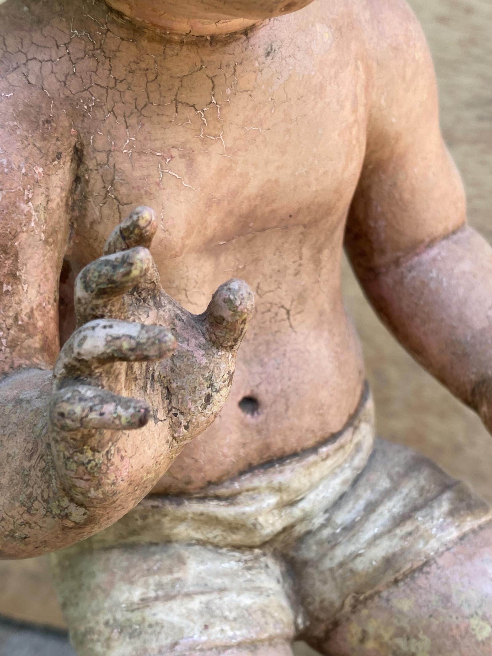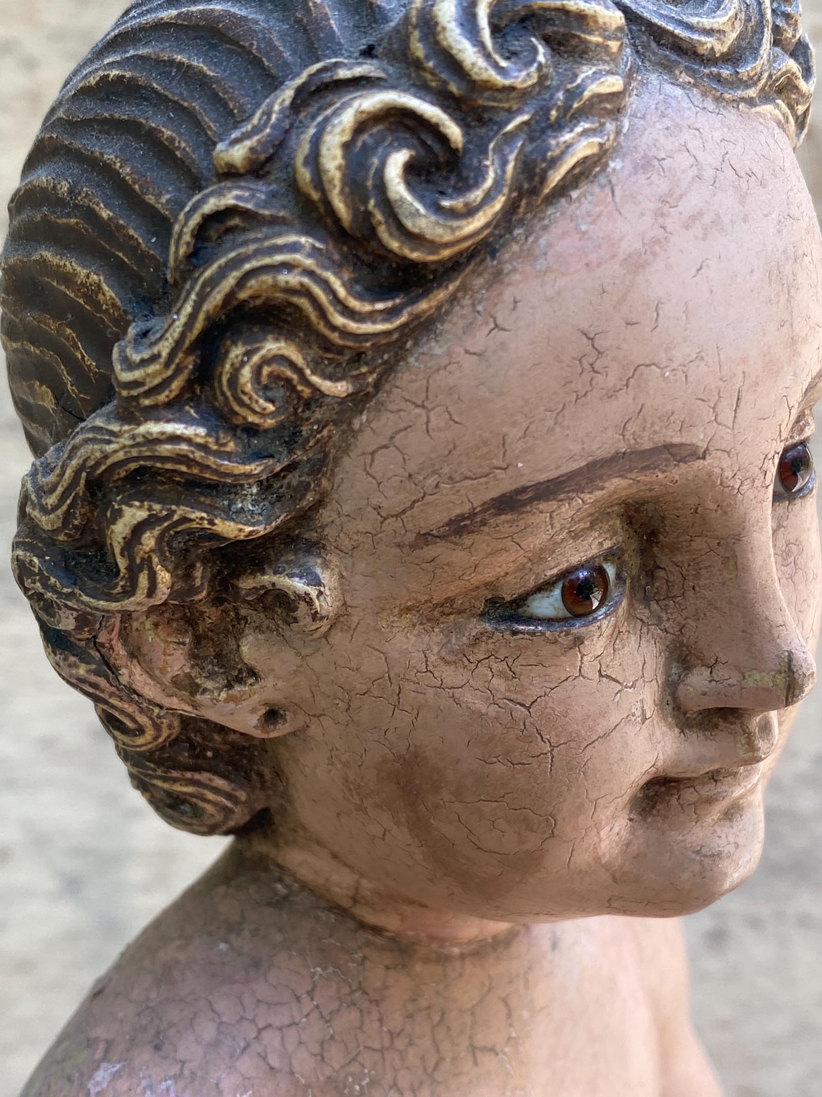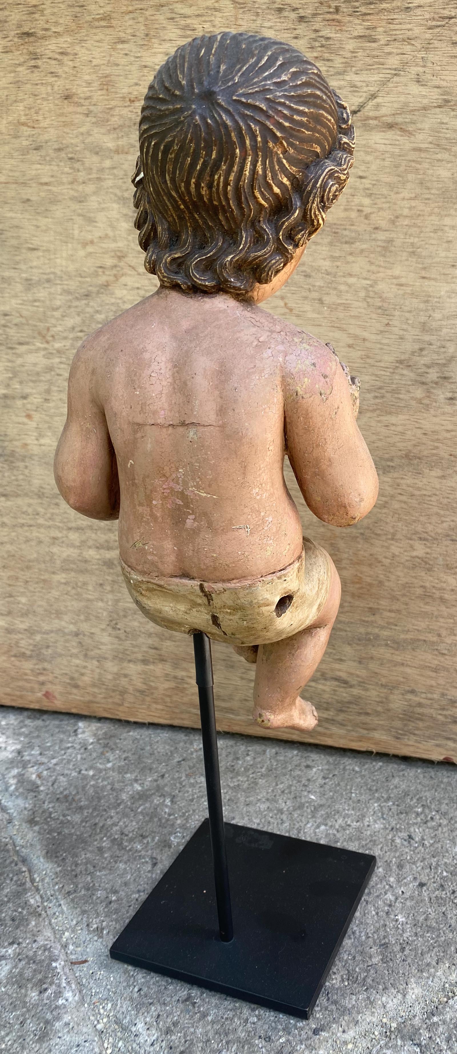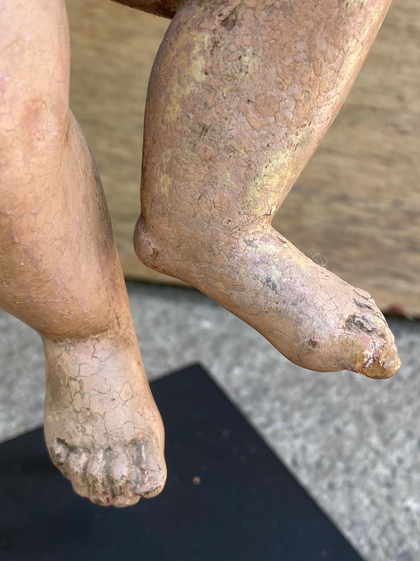 Rare for pieces of this age, all fingers remain intact, enhancing both its artistic and historical value. The serene expression and graceful posture convey a sense of innocence and sanctity, characteristic of religious sculpture in the Spanish Colonial tradition.