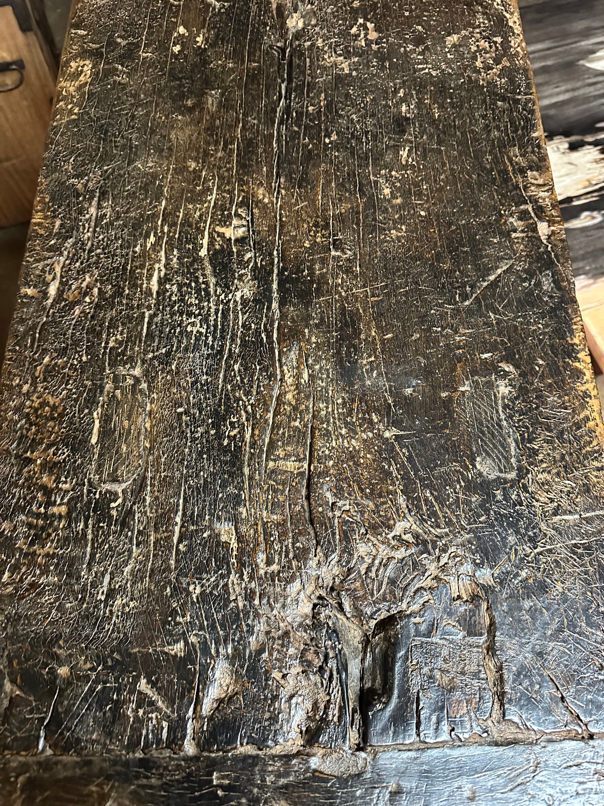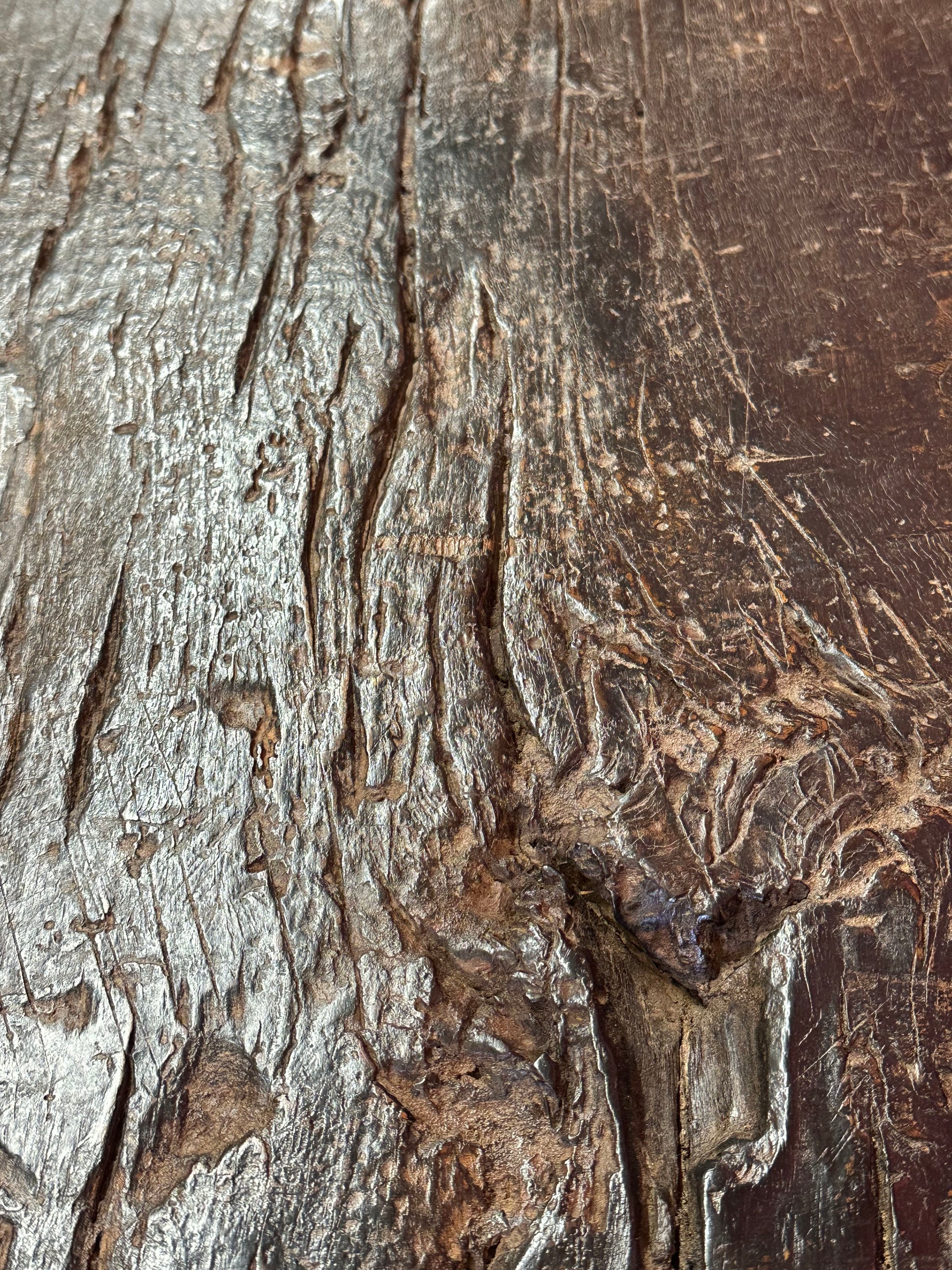 The surface displays a beautifully worn patina, developed through generations of use, with subtle texture, soft abrasions, and tonal variations that speak to its age and authenticity. The naturally undulating stretchers add a sculptural quality while providing structural strength, a characteristic feature of traditional Northern Chinese furniture.