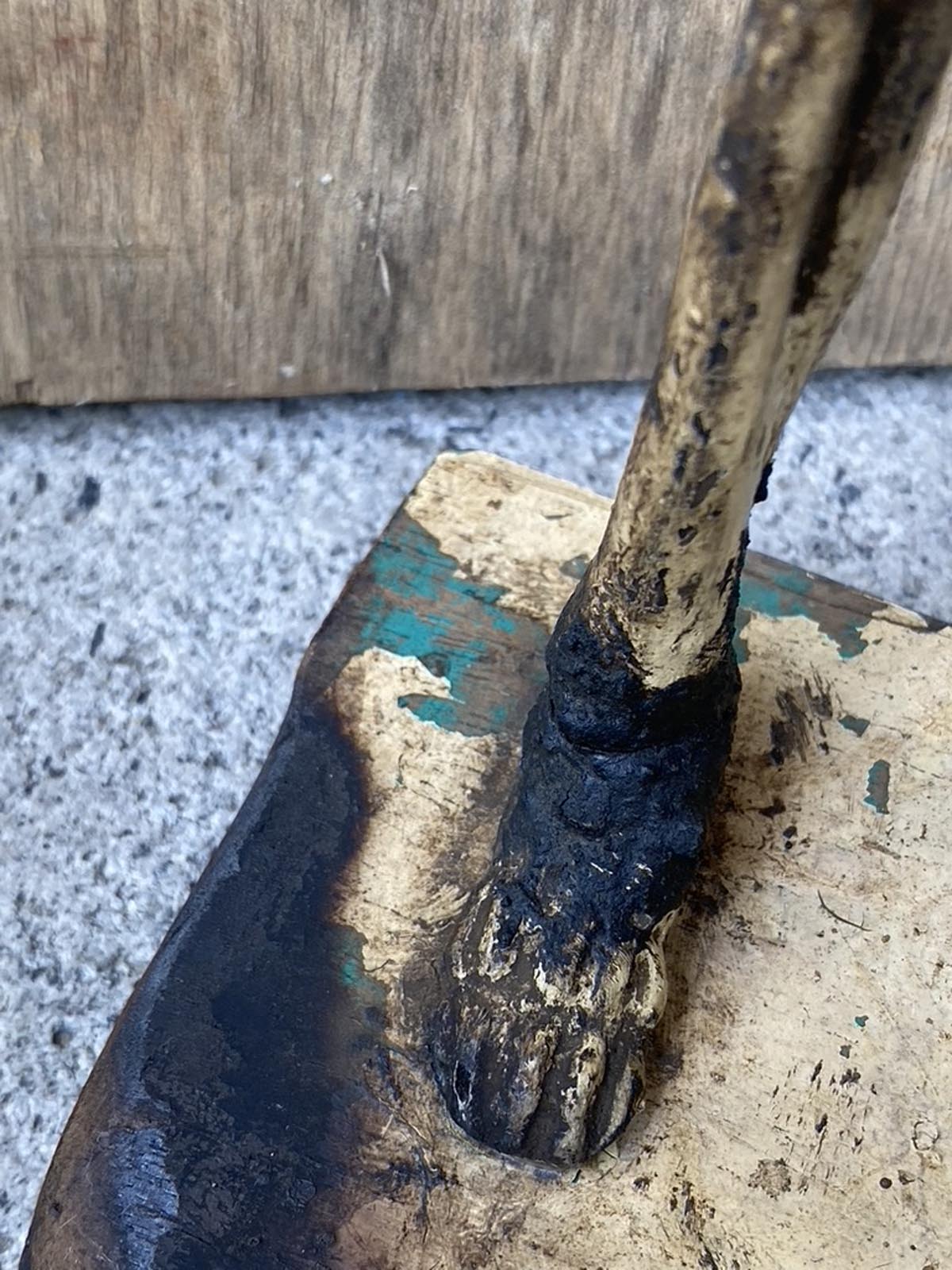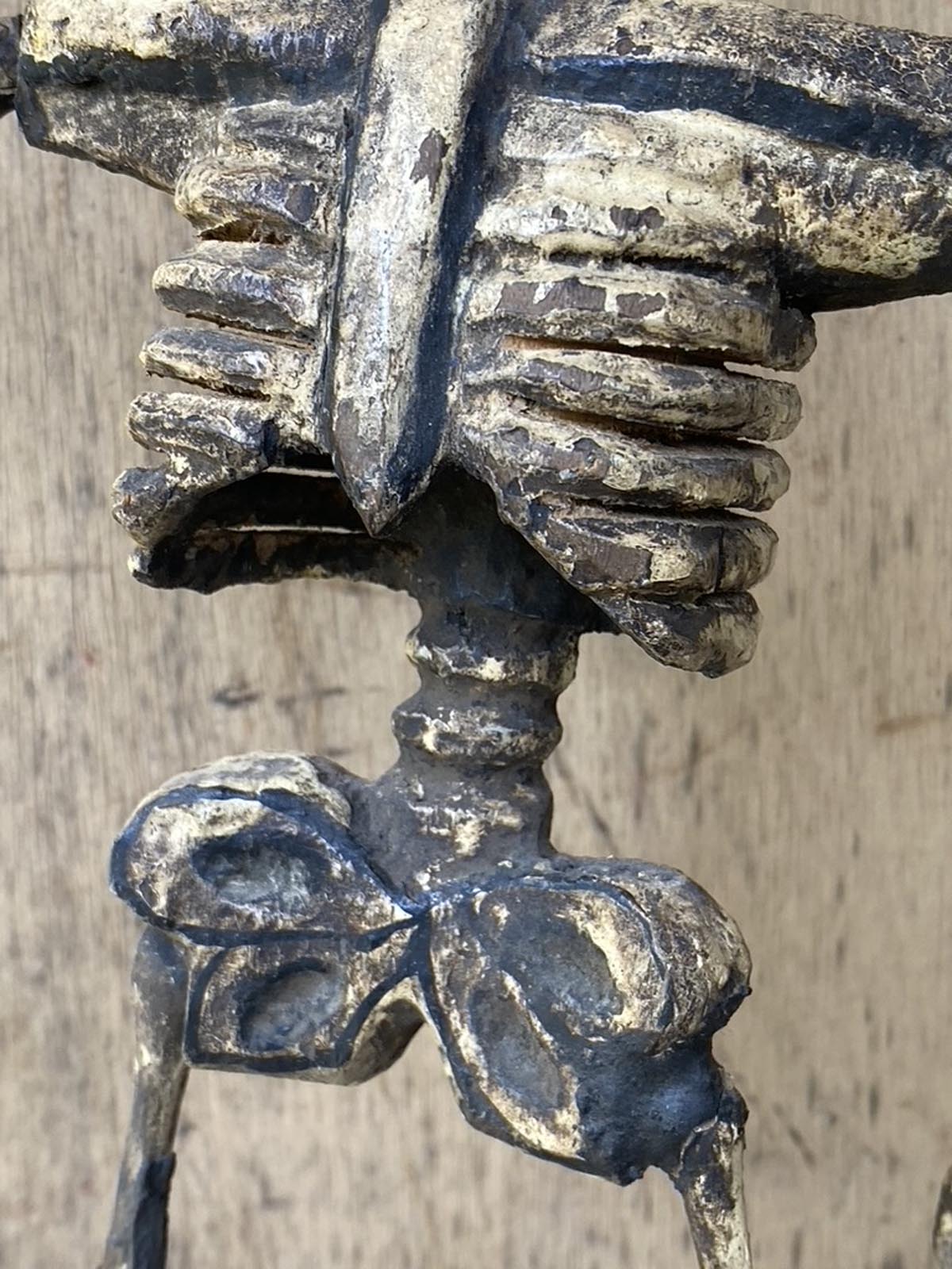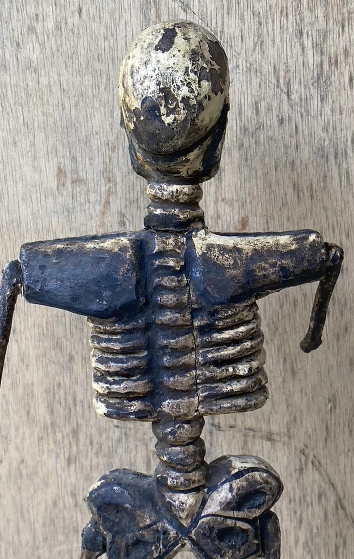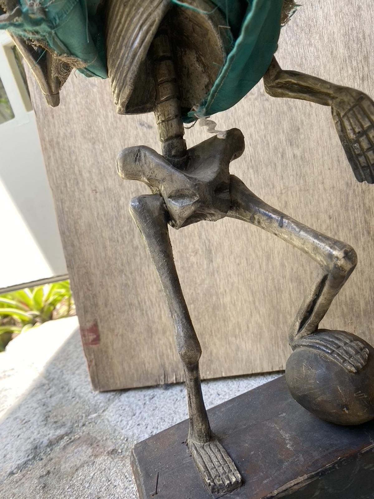 In Guatemalan and broader Mesoamerican syncretic traditions, such representations are associated with folk saints believed to offer protection, healing, and safe passage for souls. Santa Muerte (“Holy Death”) is particularly invoked for health, justice, and protection, and though more commonly linked with Mexican spirituality, figures like these reflect localized iterations throughout Central America.